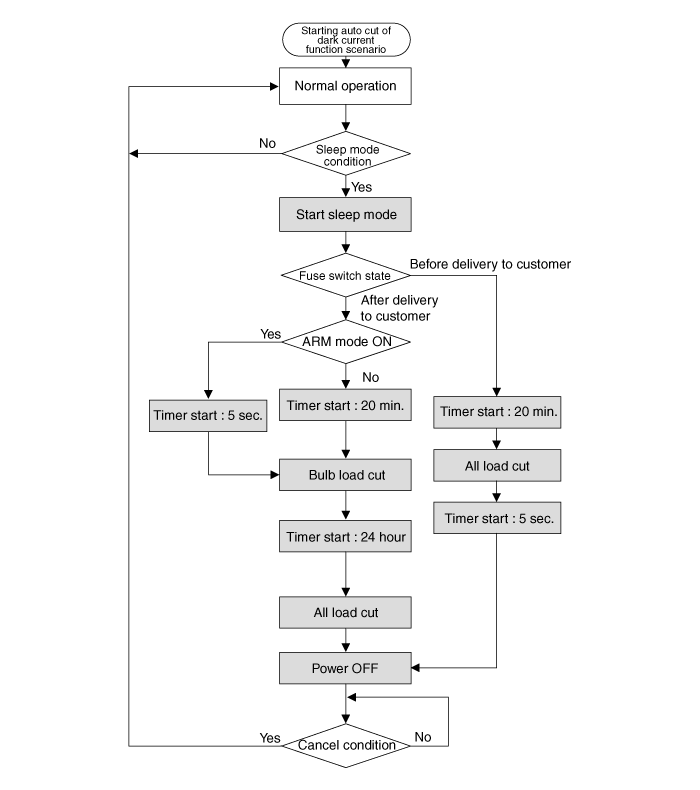 "Sleep" condition : IG OFF, constant input switch, CAN network doesn't activate.